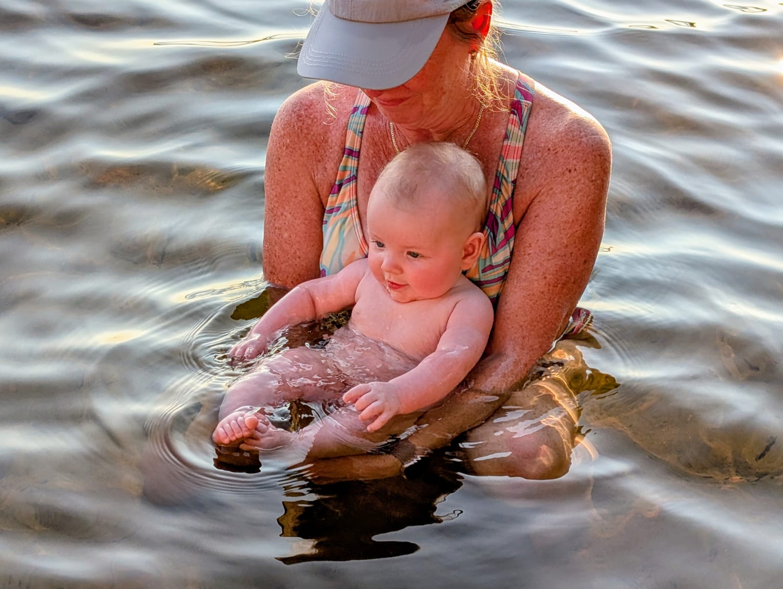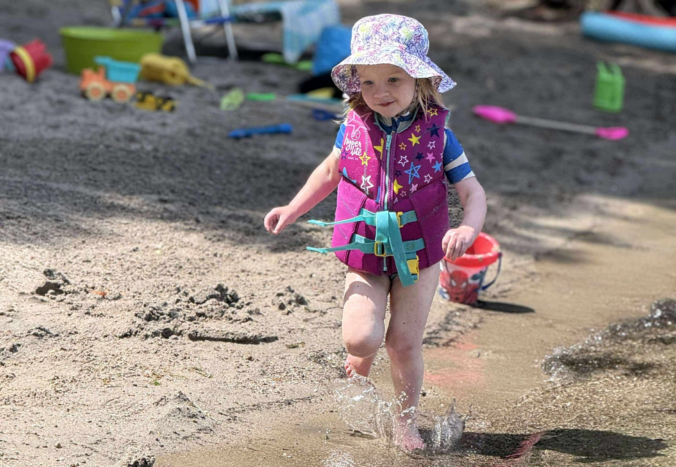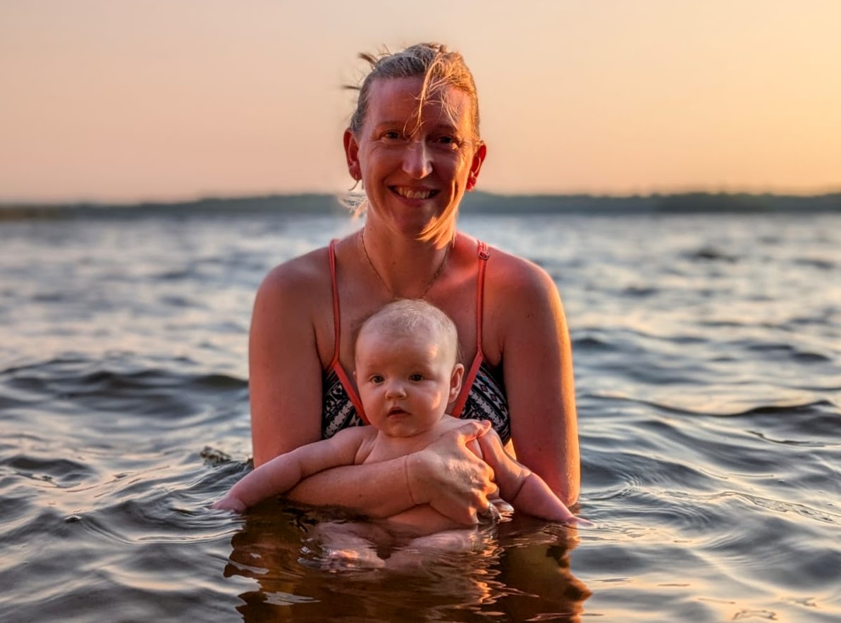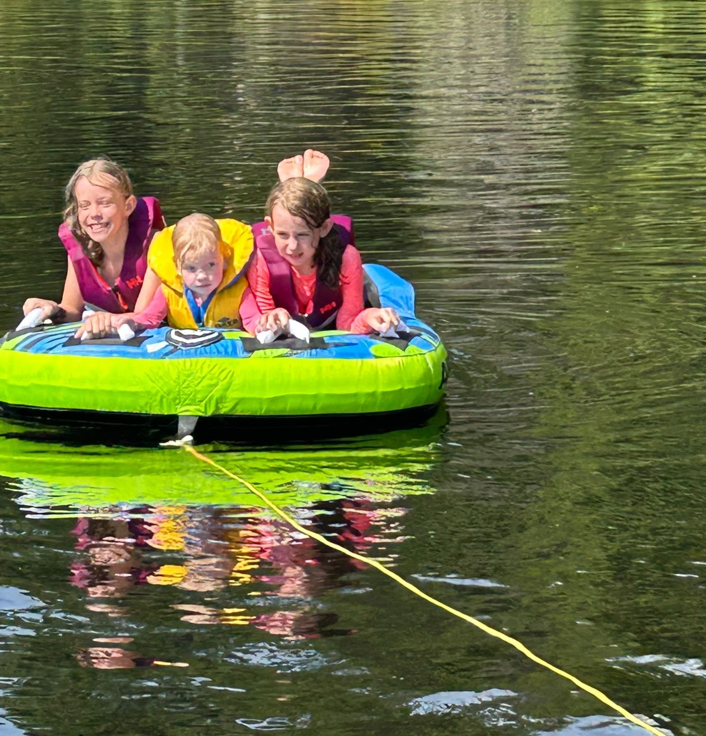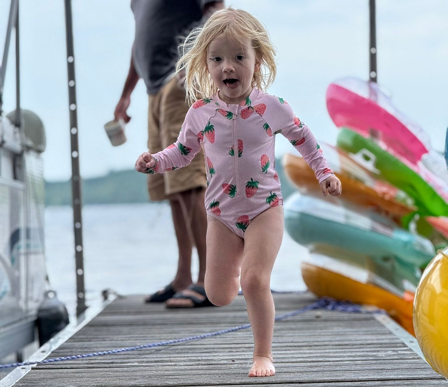 After Otter Lake the summertime began in earnest, and thanks to Caitlin's generous maternity leave policies, we had her and Quinn and Casey and even Wade for a stretch of several weeks in a row, which was fantastic. And unlike previous years -- where the "nurse curse" often meant cold and/or wet weather -- we had some pretty amazing weather. Quinn got brave at Otter Lake after seeing the older girls jumping off the paddleboard in the shallow water and so she spent a lot of the summer doing exactly that at our cottage, until she was leaping in the air and going under the water with her head fully submerged for a surprisingly long time! As is traditional with new members of the family, Casey had a bath in the kitchen sink (we gave Jack a bye on this tradition for obvious reasons) and Quinn helped Grandma make a cake, and then it was time for Quinn to turn three whole years old! Wade spent hours making a butterfly cake that he saw on Instagram and Quinn wore her birthday crown and her Elsa dress and it was fantastic. And there was lots of time for Quinn and I to sit looking out at the lake and reflect on how great life is at the cottage, and ride bikes and run up and down the dock and go for boat rides and play hide-and-seek in the popup trailer we bought this year for overflow sleeping. Quinn and I drew hopscotch patterns on the driveway with chalk, and Becky read books with Quinn on the porch, and Wade read books with Casey and Quinn hugged her new brother a lot and hugged her dad, and Meaghan read books with Quinn and her cousin Ophelia, and Becky and Caitlin held Casey in the lake and he even floated around in his very own floaty and seemed very chill and relaxed.