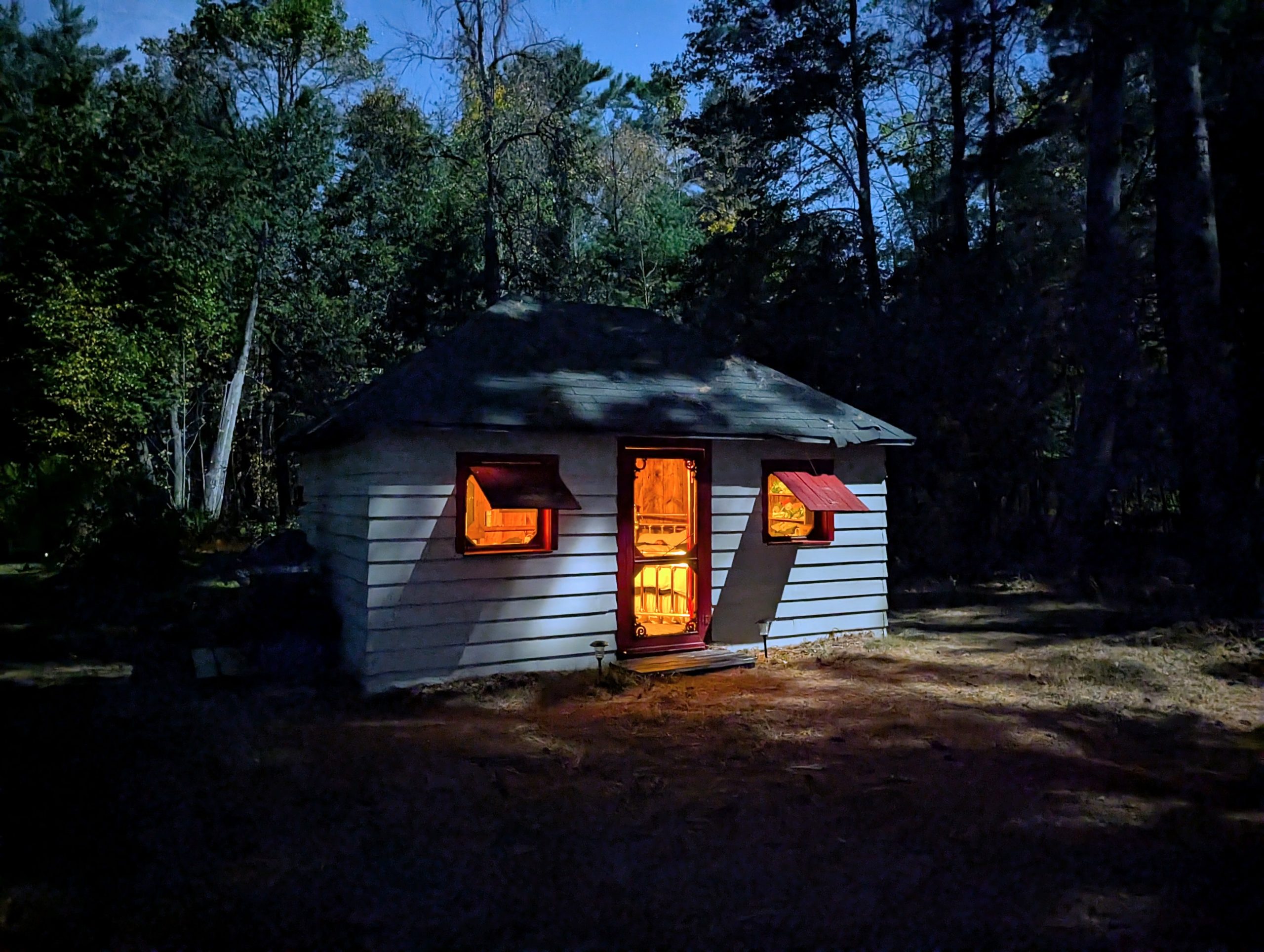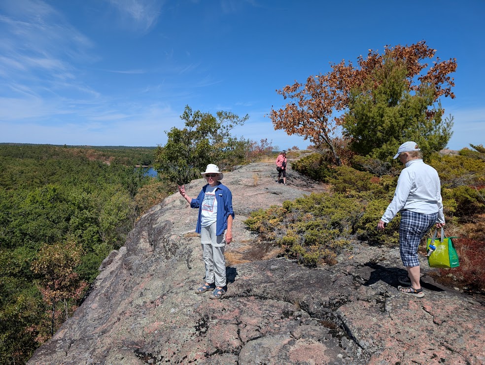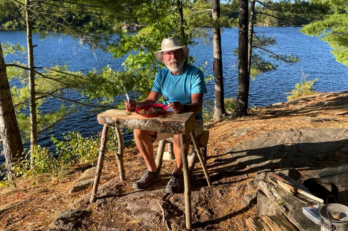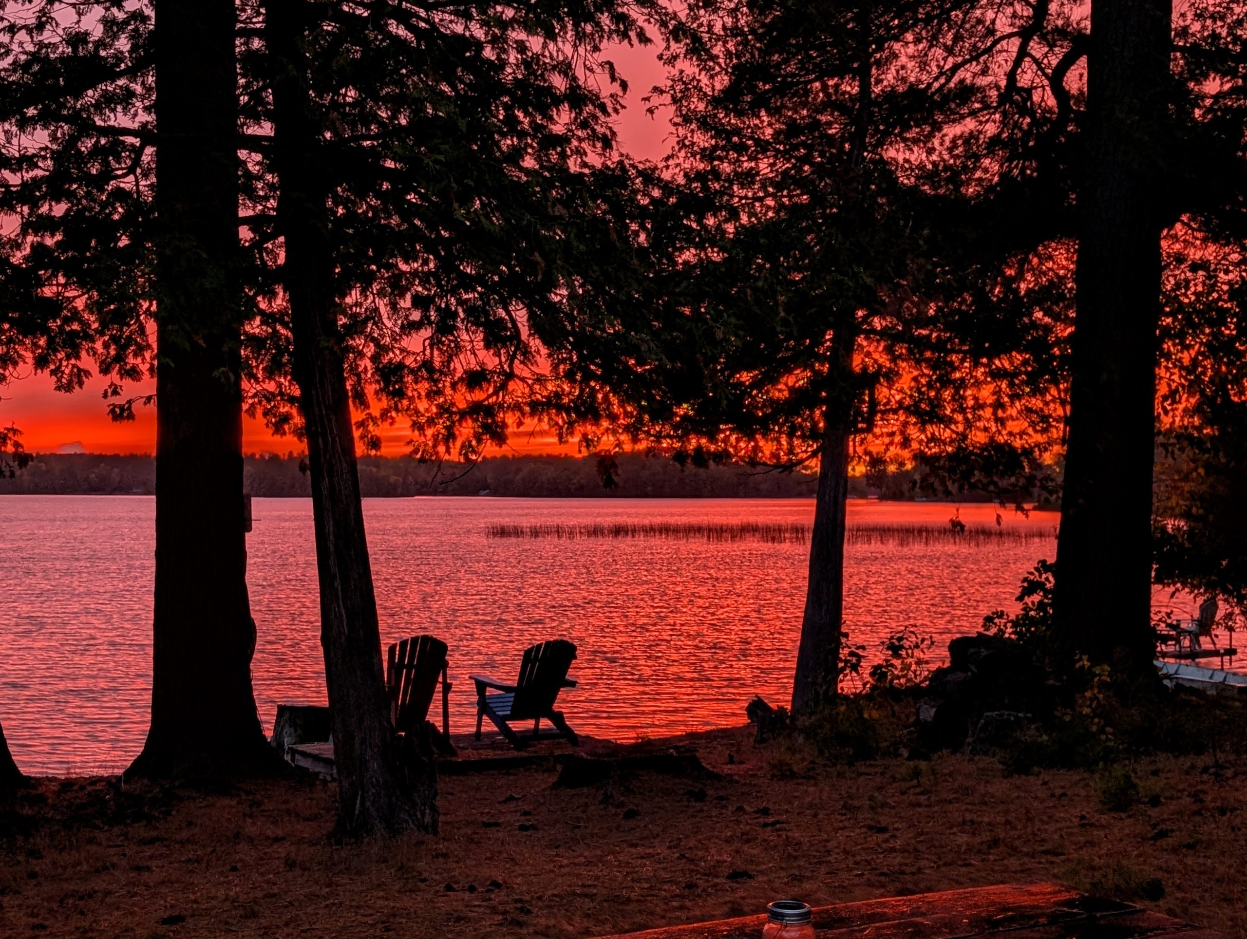 August brought the usual reunion of old university friends at the Farm, but this one had a twist: several of our members had turned 65 recently, including young Becky, so there was a cake and much merriment. In September, Becky and I went backwoods camping as we have done for many years now, but this time we decided to take it easy on our old bones and we only did one short portage instead of three long uphill ones :-) We had a lovely time on this tiny lake, and went for a great hike, and had a beautiful afternoon at our campsite -- which had the single largest collection of firewood I have ever seen that was obviously left by some kind person prior to us, and they even used their whittling skills to make some pioneer furniture from logs, which I used to eat dinner at. Unfortunately for us, there was a fire ban due to weeks of no rain, so all that wood went for naught. Back at the lake there was lots of time for sunsets and cruises on the pontoon boat, and jumping off and floating around in the bay. At Wade's family cottage up near Parry Sound, Quinn went tubing behind a motor boat with her cousins for the first time! Becky and I and a bunch of friends went to visit a friend who lives in Muskoka and we had some great food and a singalong by the bonfire, and our friend Kathy and I went kayaking on Lake Rosseau, and I had a brain fart and managed to forget to tie the kayaks down on the car for the return trip, so one came off as we drove down the road :-) Luckily it didn't hit anyone, it just wound up in some nice lady's front yard, and only had a couple of little dents. Remember everyone, always check that your kayak is strapped down before you drive away! LOL. Later in the fall we had a full moon so bright that you could almost read a book on the beach at midnight (I didn't though) and the photos make it look like I used some kind of bright filter but that's exactly what it looked like.