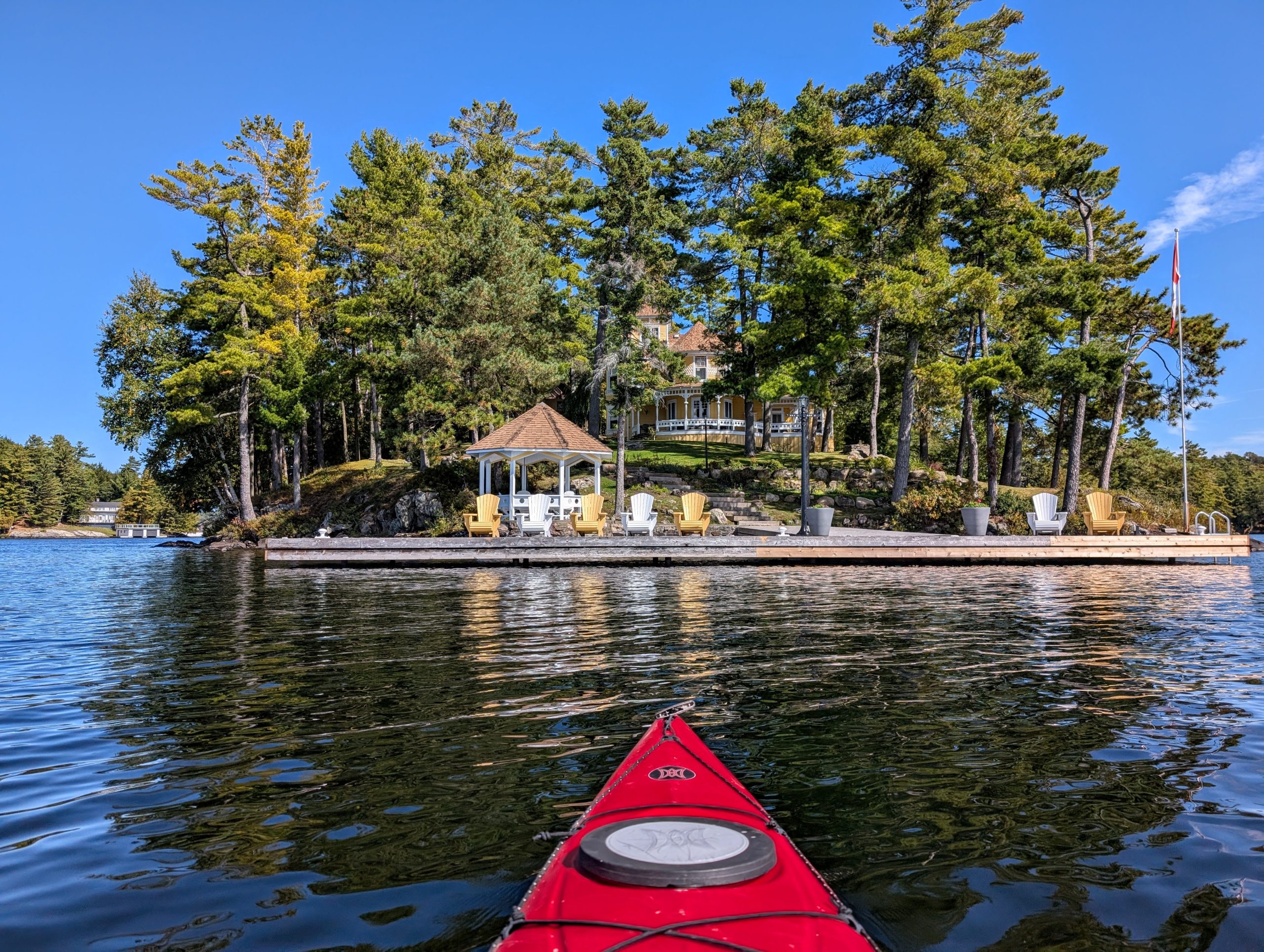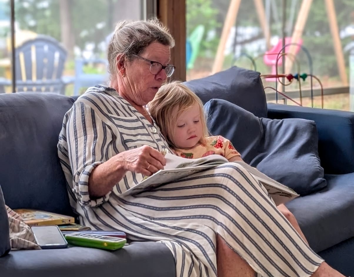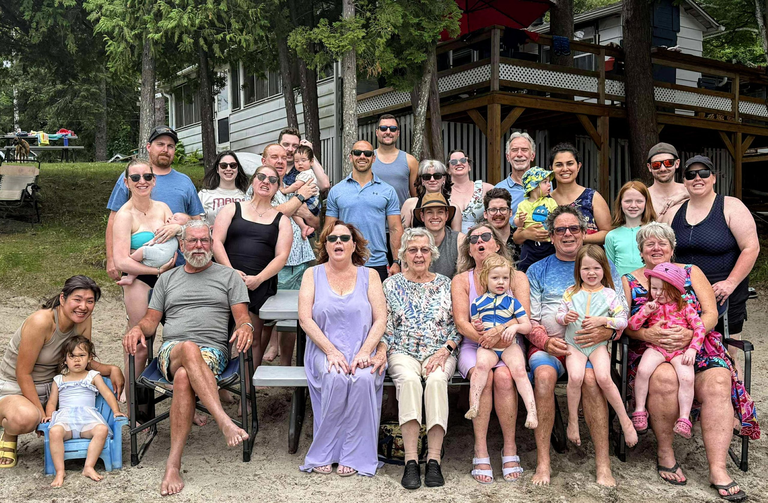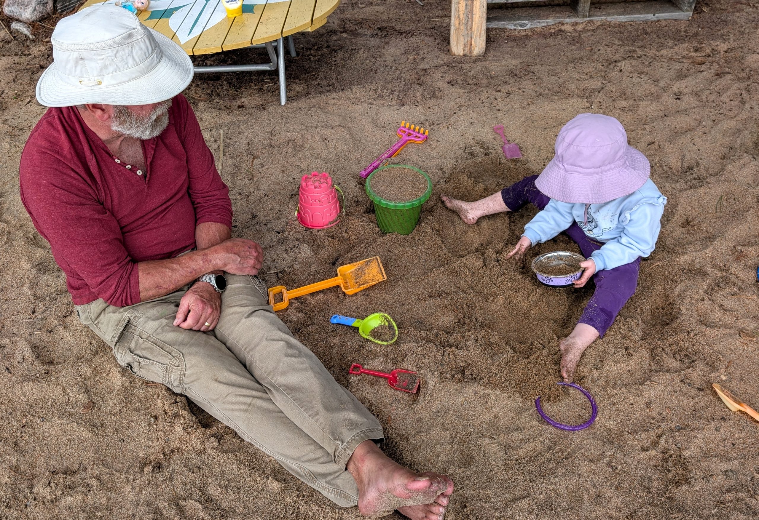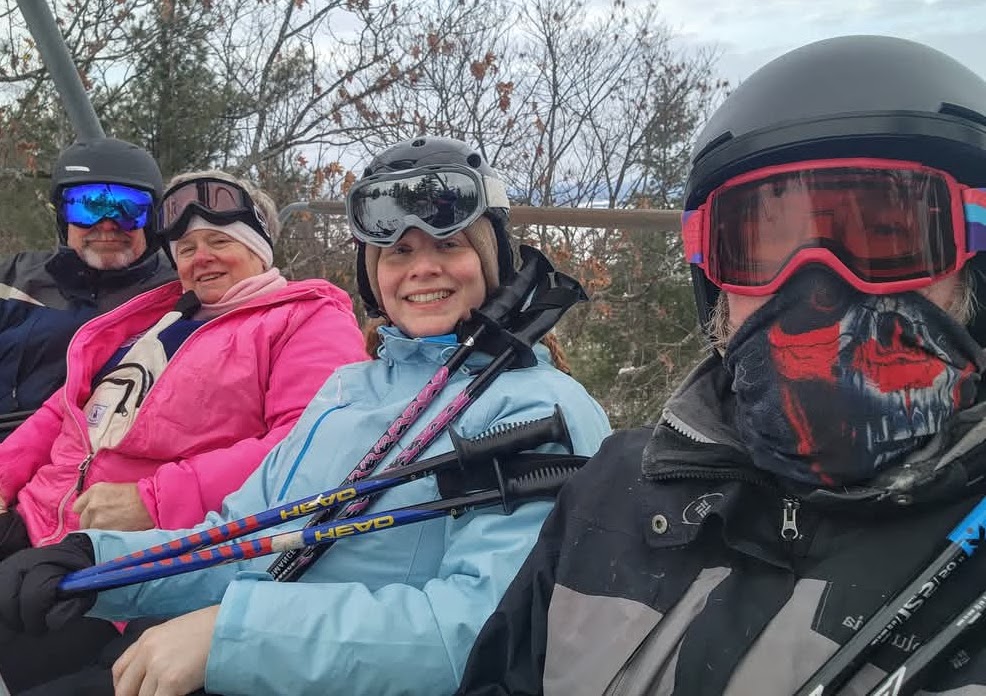 Anyway, now that we've covered the most important events of the year in advance, let me back up to the beginning. We spent Christmas at Caitlin and Wade's place in Ancaster last year, where we all wore our matching green plaid Christmas pyjamas. We taught young Jack how to make a snowman and how to toboggan, and I even let Jack borrow my massive sheepskin overcoat with the fur collar, which I in turn have borrowed from our neighbour Kris's father. That thing has to weigh about 25 pounds. Quinn also did a little tobogganing in the old yellow toboggan at the Farm, which I think is so old that we used to drag Caitlin around it when she was the same age. In February Becky and I joined her brother Dave and sister-in-law Jenn at a log cabin Airbnb they rented near the ski hill at Calabogie. Log cabin doesn't really cut it though -- this was a gigantic five-bedroom log home with a games room and a barrel sauna and a separate guest cabin where Becky and I stayed. And while Becky stayed at the cabin to look after some of the younger kids, I went downhill skiing for the first time in at least a couple of decades. And it went pretty well! Luckily there was lots of snow, so when I accidentally took a wrong turn and wound up on a black diamond run it wasn't even that bad. In March it was time to head for a warmer climate, so we headed down to Florida and spent some time relaxing in the sun and kayaking around the bay near Venice and playing pickleball. Everyone was very apologetic about you-know-who and his stupid policies and comments related to Canada, which was nice.